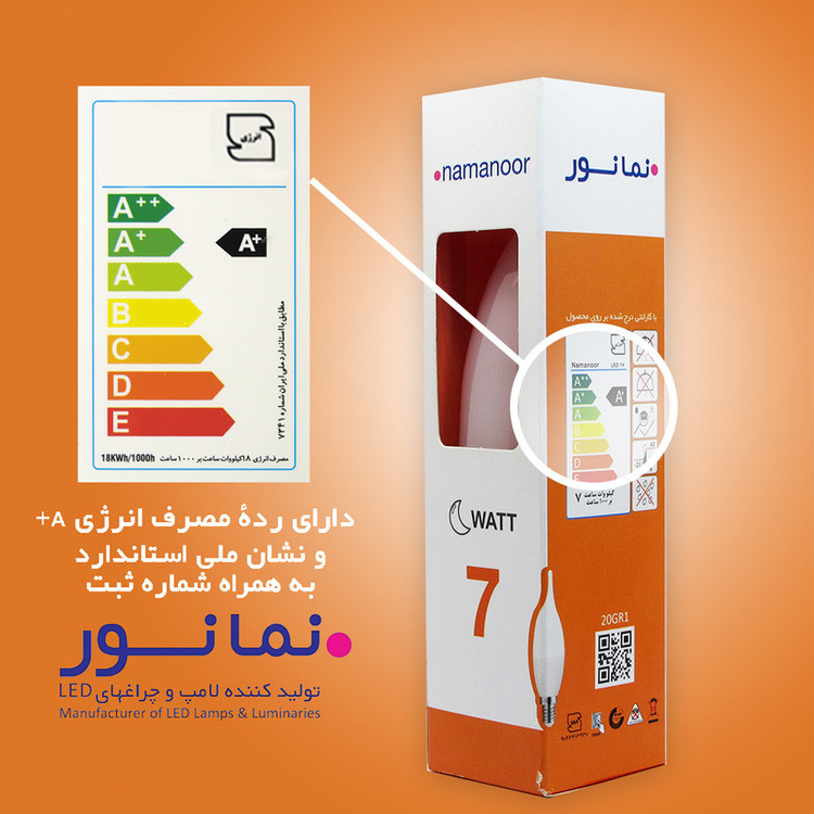لامپ اشکی 7 وات نمانور مدل LED با ردۀ مصرف انرژی A+ و نوردهی بسیار مناسب یکی از بهترین گزینه ها برای نصب روی انواع لوستر و چراغهای تزیینی است. این لامپ با کیفیت که دارای علامت استاندارد ایران است، دارای زاویه تابش 180 درجه ای و عمر مفید 15 هزار ساعتی است که در نوع خود فوق العاده محسوب می شود. همچنین، در کنار توان 7 واتی، اندازۀ فیزیکی این لامپ اشکی نیز طبق استانداردهای جهانی بوده و تمام این موارد لامپ ال ای دی نمانور مدل اشکی را تبدیل به یک انتخاب هوشمندانه برای مصرف کننده کرده است. از دیگر مشخصات اصلی این لامپ ال ای دی میتوان به عدم انتشار پرتوهای زیانآور ماورای بنفش (UV) و عدم وجود جیوه در آن اشاره کرد که همین موضوع باعث شده این لامپ هیچگونه آسیب و آلودگی برای محیط زیست نداشته باشد. لامپ ال ای دی نمانور مدل اشکی میتواند روشنایی خوبی معادل یک لامپ 60 وات معمولی (تنها با مصرف 7 وات) داشته باشد. این لامپ اشکی، دارای کمترین میزان تولید گرما بوده و از این جهت هم باعث بالا تر رفتن طول عمر چیپ داخلی خود شده است و هم از رنگ پریدگی شید لوستر در طولانی مدت جلوگیری خواهد کرد. از مشخصات بارز محصولات نمانور، میتوان به طول عمر بالا، مصرف انرژی پایین، و مناسب بودن برای محیط زیست (بدون هیچگونه مواد مضر )، و همچنین عدم انتشار هرگونه پرتو خطرناک اشاره نمود. برند نمانور یکی از خوشنام ترین و شناخته شده ترین برندهای ایرانی در زمینۀ تولید لامپهای ال ای دی است. این لامپ دارای نشان ملی استاندارد به همراه شماره ثبت بوده که همین موضوع گواه کیفیت بالای آن در مقایسه با سایر رقبای متفرقه به شمار می رود.