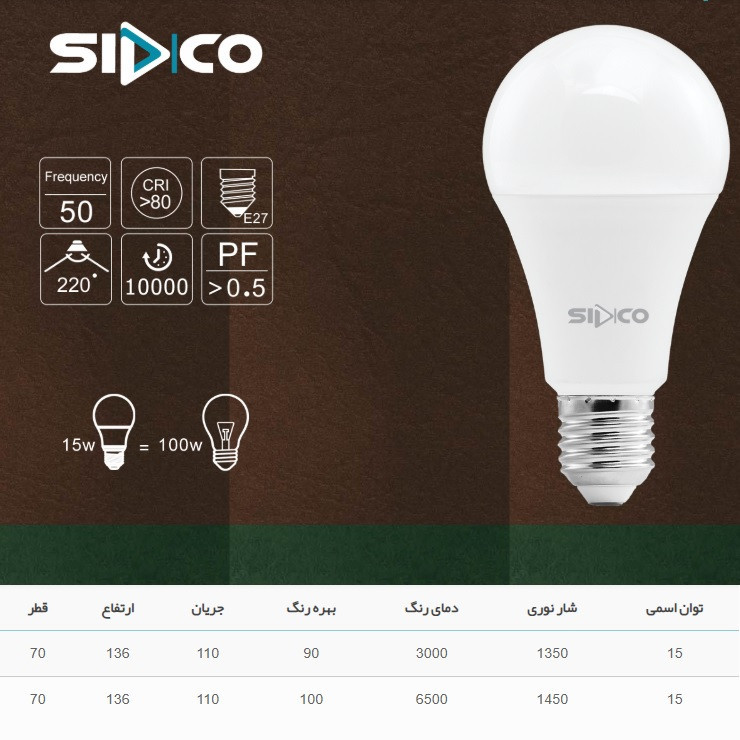 لامپ 15 وات سیدکو مدل SLS15 پایه E27