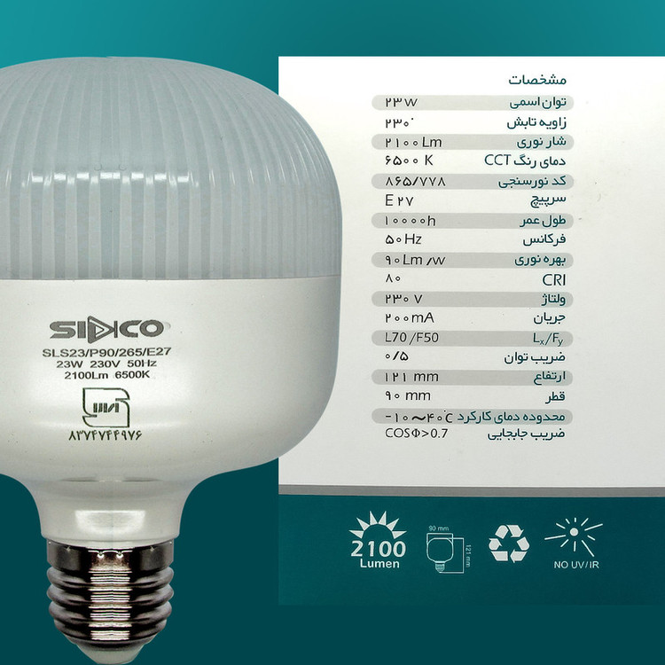 لامپ ال ای دی 23 وات سیدکو مدل آترین یکی از مدرن ترین لامپهای ال ای دی موجود در بازار است. نوع حباب و ظاهر این لامپ، برای اولین بار است که در ایران ارائه شده است. طراحی مدرن و بسیار شیک، در کنار دارا بودن علامت استاندارد، و بهره بردن از بهترین مواد اولیه و خط تولید، این لامپ را تبدیل به یکی از بهترین انتخاب های موجود در بازار ایران کرده است. شار نوری این لامپ 23 وات، 2100 لومن واقعی است که در نوع خود بسیار عالی محسوب می شود. بازده انرژی این لامپ نیز در ردۀ +A قرار دارد. نور لامپ ال ای دی 23 وات سیدکو مدل آترین، نوری یکدست و فاقد نویز، و هرگونه مواد سمی است.