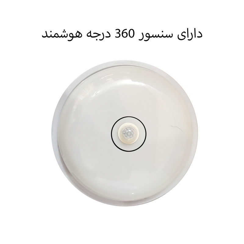 چراغ سنسوردار 20 وات LED دایره ای شکل بوده وبه سقف یا دیوار متصل میگردد و قطر آن 22 سانتی متر است ، این چراغ که به سقف متصل می گردد دارای 6.5 سانتی متر عمق و زاویه پوشش 360 درجه می باشد ، همچنین قطر آشکار سازی آن تا 6 متر بوده چراغ های سنسوردار عموما جهت روشنایی مکان هایی با تردد بالا استفاده می شود و از هدر رفتن مصرف برق جلوگیری میکند ، چراغ سنسوردار ال ای دی مدل 360 درجه جزو مجموعه چراغ سنسوردار سقفی می باشد که به صورت روکار بر روی سقف نصب می گردد. نحوه کارکرد چراغ های سنسوردار به این صورت است که به محض حضور فرد در محل نصب این چراغ و محدوده دید سنسور چراغ روشن شده و پس از عبور شخص و خارج شدن از محدوده و طی شدن زمان تایمر که قابل تنظیم می باشد چراغ خاموش خواهد شد ، به همین جهت در مکان هایی مانند راه پله ها پس از عبور افراد چراغ روشن نمی ماند و برق نیز هدر نمی رود و به دنبال آن در هزینه های مصرف برق نیز صرفه جویی خواهد شد.