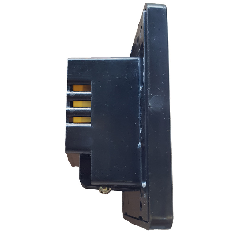 صفحه لمسی استفاده شده در تولید این محصول از نوع خازنی بسیار با کیفیت و با حساسیت تنظیم شده برای لمس از روی یک پلکسی به ضخامت 2 میلیمتر است. علاوه براین حساسیت صفحه لمسی به گونه ای تنظیم شده است که حتی با لمس کردن کلید توسط کودکان نیز عملیات مورد نظر انجام می شود. این کلید دارای 6 ترمینال که به ترتیب نول فاز و 4 ترمینال خروجی برای لامپ و روشنایی می باشد و لازم است در سیم کشی سیم نول در قوطی برای راه اندازی این کلید موجود باشد . کلید ظاهری زیبا و شیک دارد که می تواند در منزل یا محل کار شما جایگزین کلیدهای قدیمی شده و جلوه خاصی به فضای شما ببخشد. این کلید لمسی دارای بدنه ای مربع شکل است که روی صفحه آن یک محل لمس به شکل گرد قرار دارد. جهت مشاهده بهتر کلید در تاریکی و همچنین کنترل عملکرد کلید، نور پس زمینه برای قسمت لمسی کلید تعبیه شده است. در حالتی که لامپ خاموش است نور پس زمینه کلید قرمز و در حالتی که لامپ روشن باشد، نور پس زمینه سبز می شود.از دیگر ویژگی های این محصول به قابلیت تعیریف تایمر 4 حالته(15 دقیقه، 30 دقیقه،1ساعته و 2 ساعته) جهت خاموش شدن خودکار میتوان اشاره کرد.این کلید قابلیت نصب در قوطی کلید های مربعی شکل را دارا می باشد.همچین تکنولوژیzero-cross به کار رفته در این محصول باعث میشود از به وجود امدن جریان های شدید لحظه ای در هنگام روشن کردن لامپ های ال ای دی جلوگیری شود.این کلید بدون چنگک بوده و برای نصب آن پیچ های مخصوص درون جعبه قرار داده شده است.رنگ رویه کلید براساس نیاز و سلیقه شما قابل سفارش است.