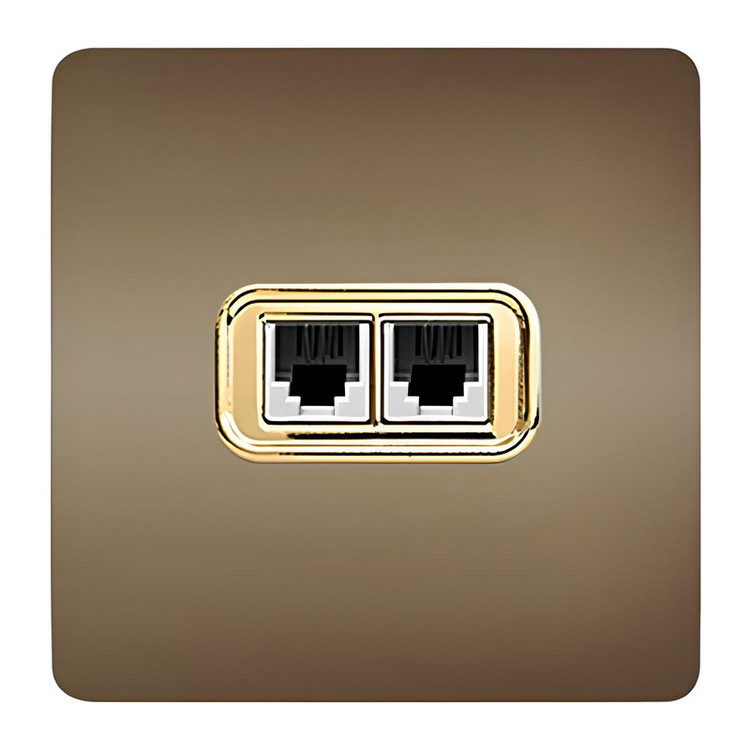 پریز تلفن دوقلو صنایع آسیا الکتریک مدل کریستال BEI-GLD