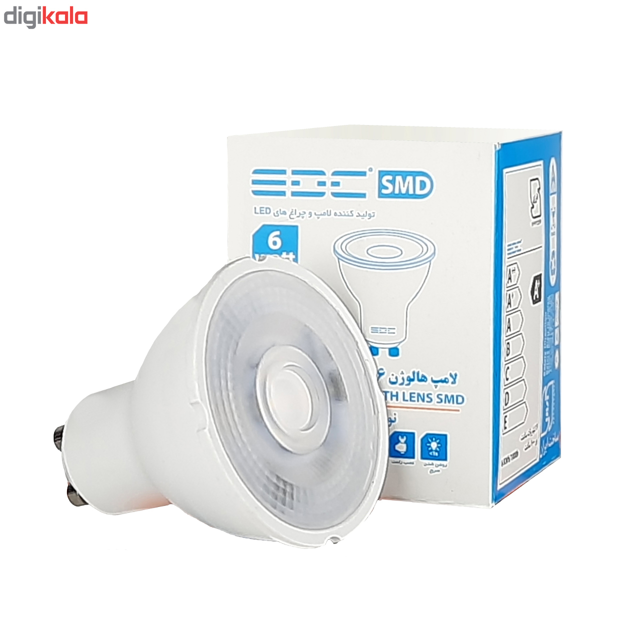 محصول فوق یکی از لامپهای پربازدهی الایدی شرکت «ای دی سی» (EDC) است. توان مصرفی این لامپ برابر با 6 وات و میزان روشنایی آن 461 لومن است. این میزان روشنایی را میتوان با یک لامپ رشتهای 40 وات برابر دانست. لامپ فوق پایه GU10(پایه استارتی) دارد . زاویهی نوردهی این لامپ 38 درجه است و سطح زیادی را تحتپوشش خود قرار میدهد. یکی از مزایای این لامپ نسبت به دیگر لامپها، استفاده از لنز برای متمرکز کردن نور تولید شده توسط لامپ است. این پوشش دربرابر ضربه، مقاومت چشمگیری دارد و به پخش نور کمک بسیاری میکند. ردهی انرژی این لامپ +A است و استفاده از آن موجب صرفهجویی در مصرف برق میشود. لامپ 6 وات فوق از عمری طولانی برابر با 25000 ساعت برخوردار است. شرکت EDC در تولید این لامپ از عناصری مانند جیوه و سرب که برای سلامتی انسان مضرند، استفاده نکرده است. نور خروجی این لامپ نیز فاقد اشعهی فرابنفش (UV) است و به چشم و پوست آسیبی نمیرساند. لامپهای الایدی به دلیل راندمان بالایی که دارند، جایگزینی مناسب برای لامپهای کممصرف محسوب میشوند