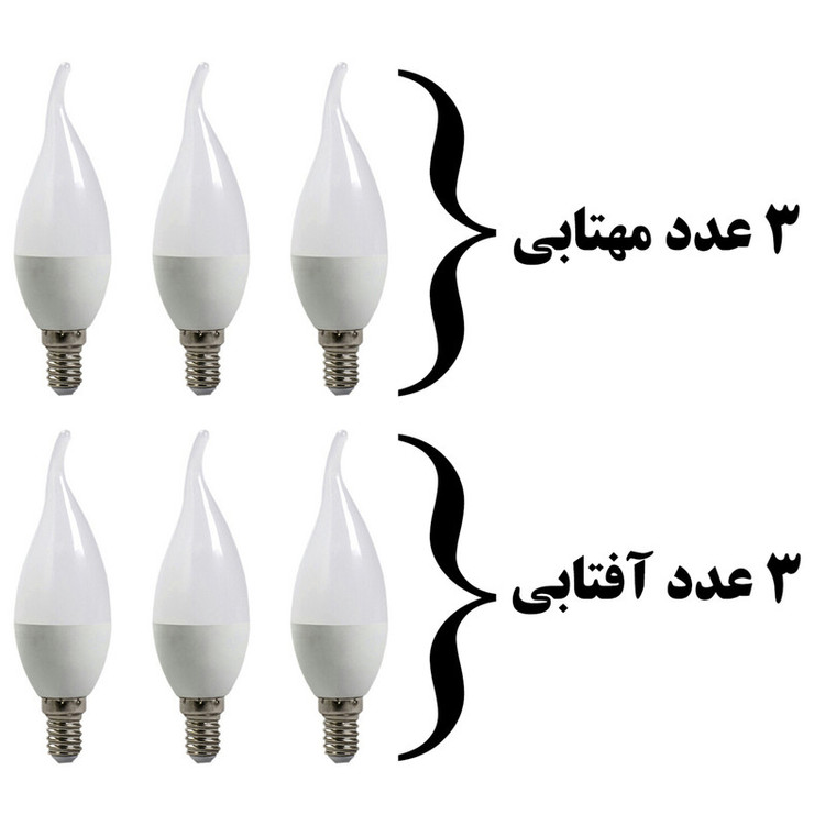 این لامپ ، با توان مصرفی نسبتا پایین (6 وات) که شامل 3 عدد لامپ مهتابی و 3 عدد لامپ آفتابی است به فروش می رسد. همچنین طول عمر این محصول به میزان متوسط 8 هزار ساعت میرسد . لازم به ذکر است که پایهی این مدل از نوع E14 است.