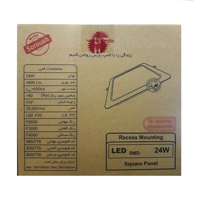 پنل ال ای دی توکار مربع 24 وات پارس شهاب مدل سروش کد Ka24